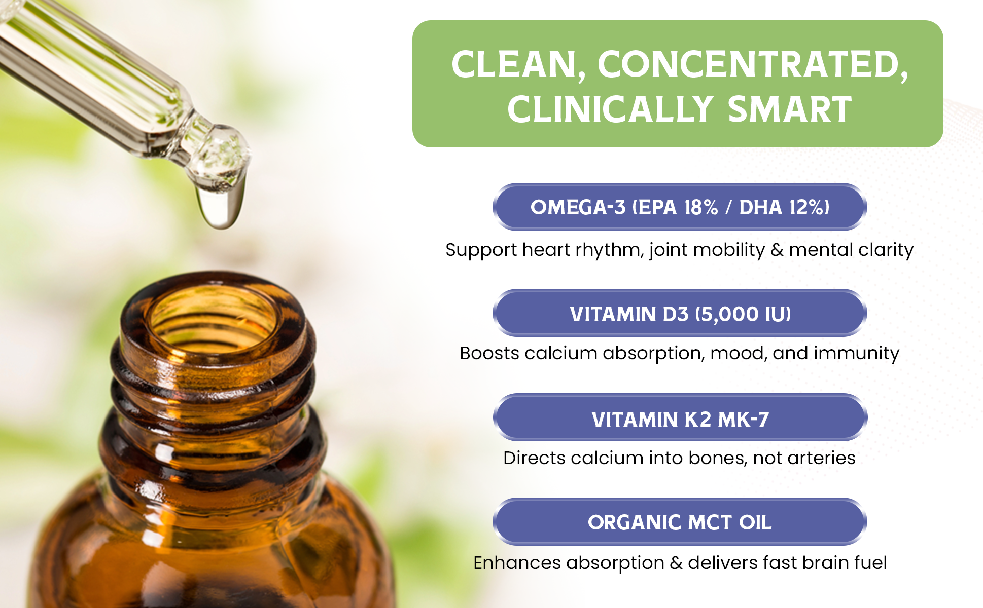 Power Your Day from the Inside Out.” A synergistic trio of Omega-3s, Vitamin D3 & K2 crafted for women who balance families, careers, and self-care with grace.